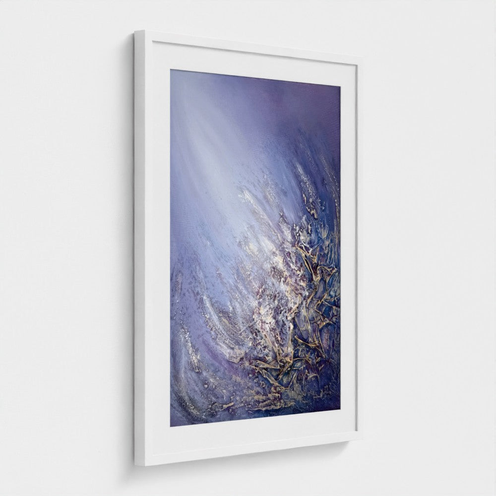 About this artwork: Aurora captures the quiet strength of transformation. Textured forms rise toward luminous gradients of lavender and white, echoing the interplay between earth and light. A piece that speaks of renewal and grace