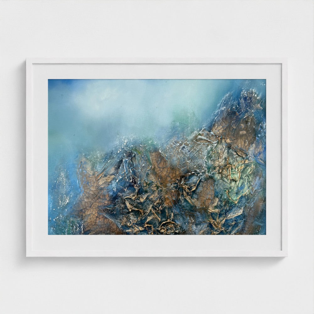 About this artwork: Dive into the enchanting depths of the Ethereal series with this latest creation, where opulent gold shades intertwine with tranquil blues to create a symphony of texture and color. The intricate textures and captivating hues invite you to explore the beauty and allure of this mesmerizing piece