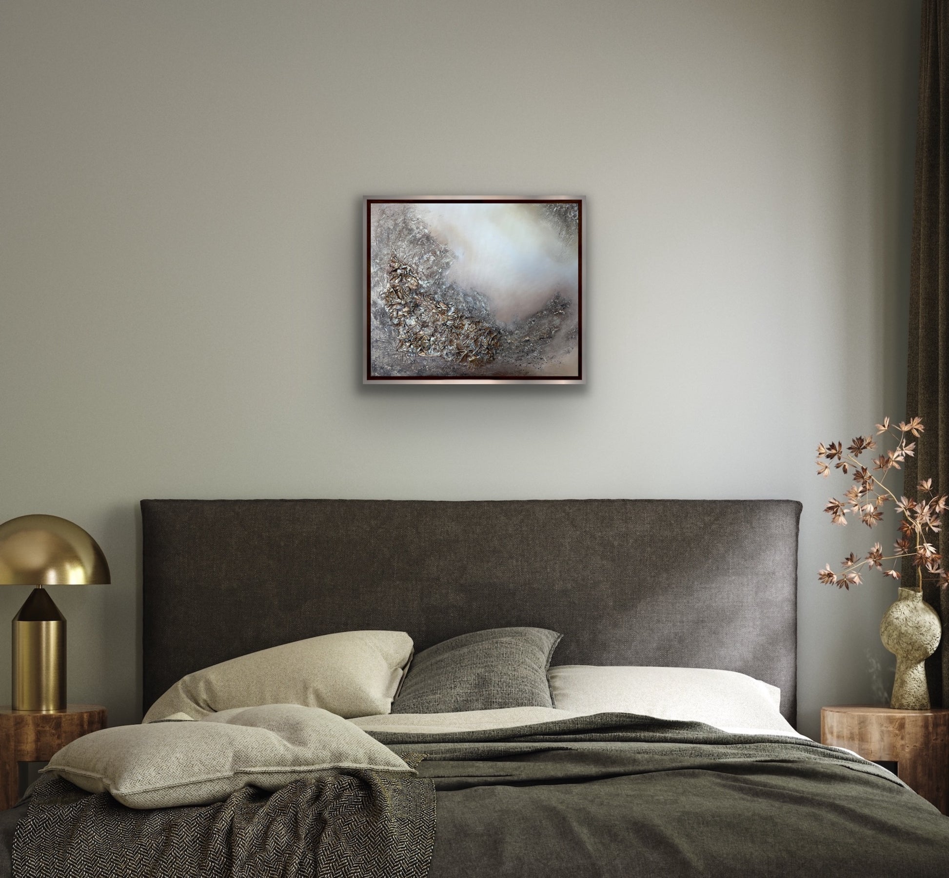 About this artwork: Soft yet powerful, Healing embodies the journey of renewal. Rich earth tones blend with shimmering bronze and gold, creating a dynamic interplay of light and shadow. The textured surface speaks to resilience—each layer a reflection of strength and restoration. This piece is a visual reminder that healing is not linear, but an ever-changing, luminous process